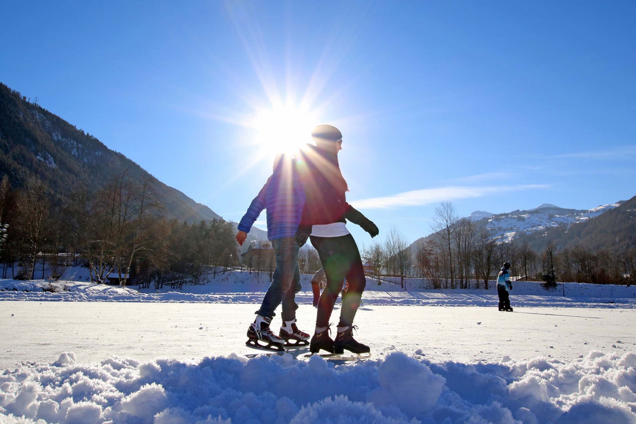 If you plan on spending your holidays in Austria with us, you’ve got countless possibilities being active in nature. Skiing, cross-country skiing, tobogganing, and snowboarding are the guests’ favourites. But you can also go ice skating almost right on our doorstep. In fact, not far from your accommodation in Prutz, there’s a real paradise for curling fans and ice skaters. Visit the picturesque ice rink in Ried, glide elegantly over the glistening ice, practise elegant pirouettes, have a go at curling, and breathe in the fresh winter air. If being active makes you hungry, look no further. Right nearby the ice rink you’ll find a small snack bar with all kinds of quick meals and hot drinks.